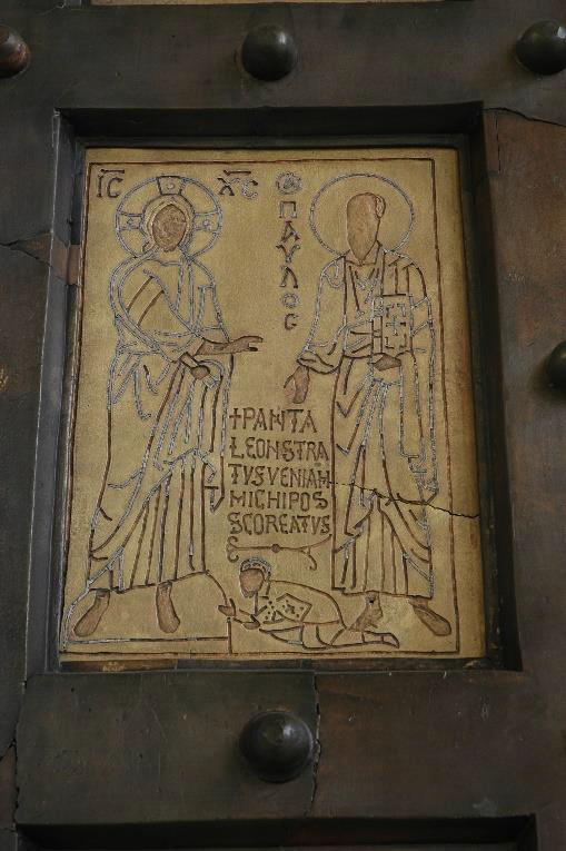 En la Puerta Santa de la Basílica de San Pablo extramuros, grabada en bronce, hay una imagen muy curiosa. En ella se ve a san Pablo frente a Cristo. Y entre los dos, postrada en el suelo como besando los pies del Señor, la diminuta imagen del donante, el cónsul Pantaleón, quien pagó la puerta. Cerca están grabados unos versos latinos que comienzan diciendo: “Pavle beate preces Domino ne fundere cesses/ consvle malfigeno pro Pantaleone rogando…” “Señor, no desoigas las preces que san Pablo te dirige rogando por el cónsul Pantaleón de Amalfi…”